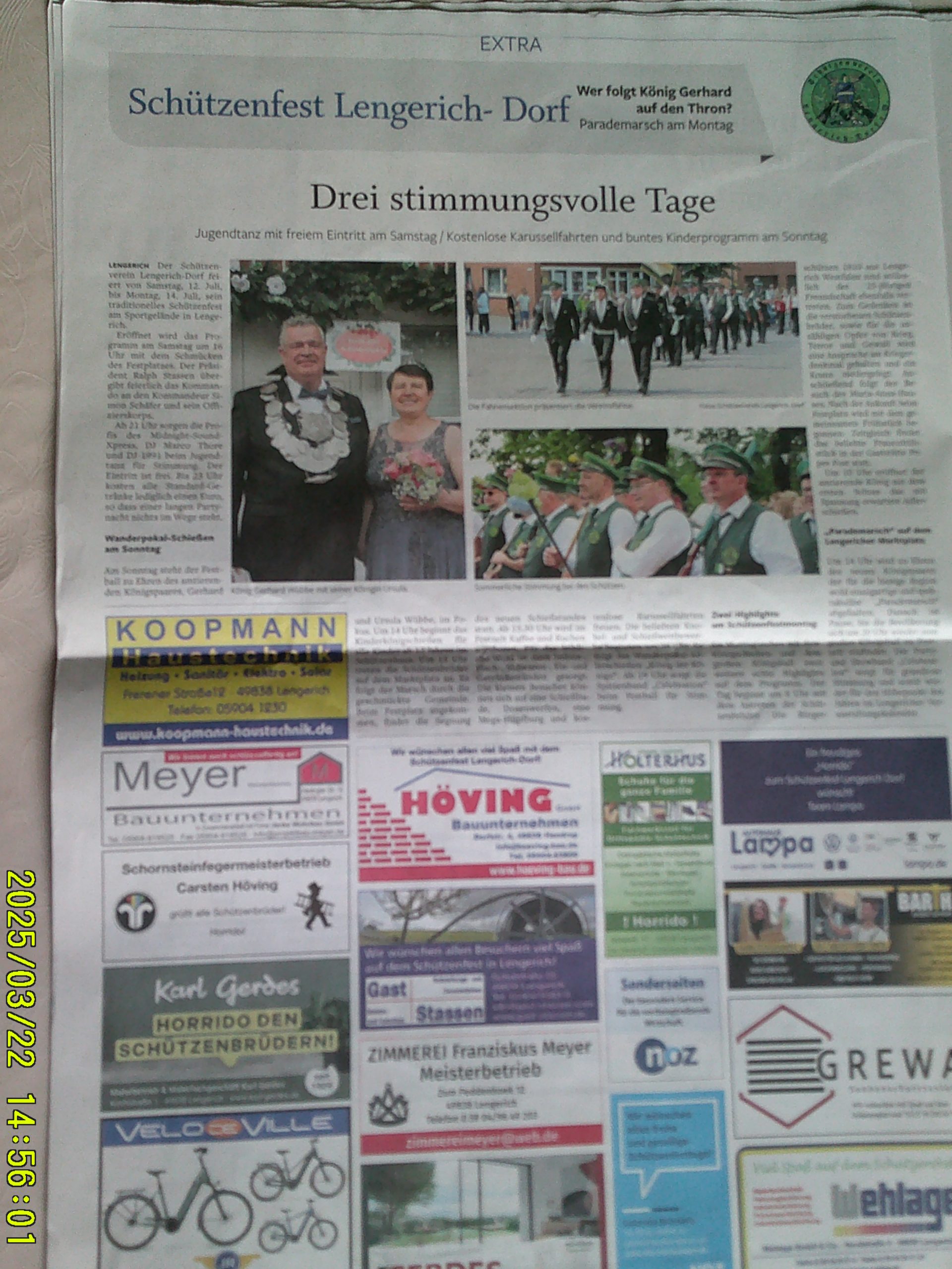 • Kurzbericht zum Schützenfest 2025 Juli 22, 2025